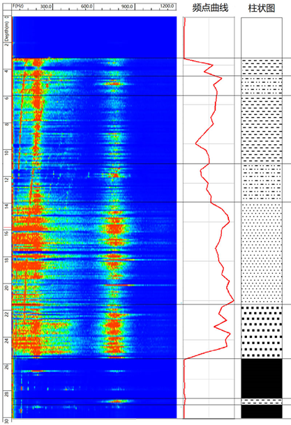 Seismic records of rock breaking are collected by a near - source three - component sensor. Through spectral analysis, the low - frequency spectrum represents the rotation speed, drill rod swing, etc., and the high - frequency spectrum corresponds to the lithology. By normalizing the high - frequency curve, information on the lithological layering during drilling can be obtained.